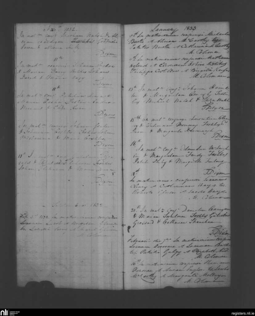 Holy Trinity, Waterford city; County of Waterford; Diocese of Waterford and Lismore. Marriages, Sep. 1832 to Feb. 1833