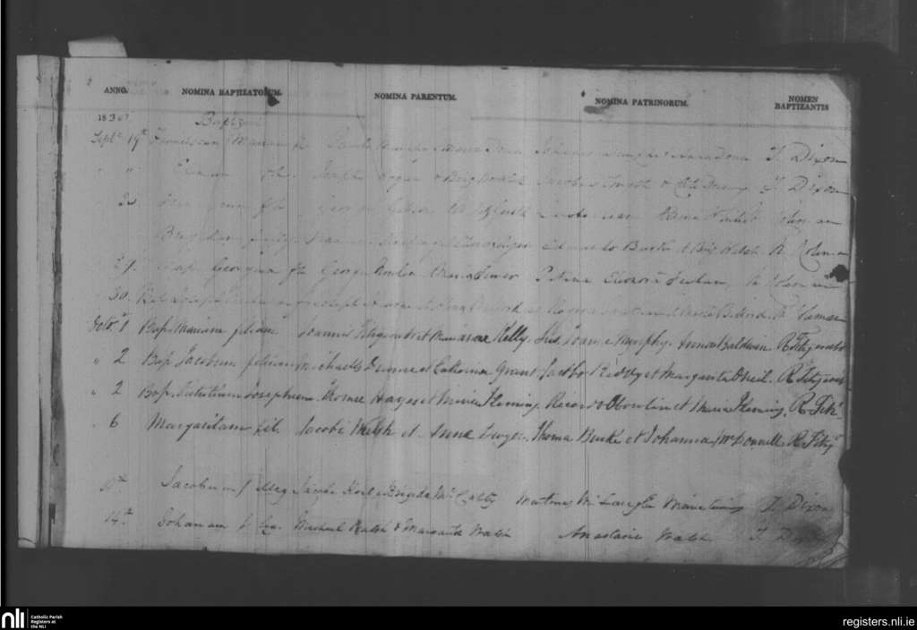 Holy Trinity, Waterford city; County of Waterford; Diocese of Waterford and Lismore. Baptisms, Sep. 1838 to Oct. 1838