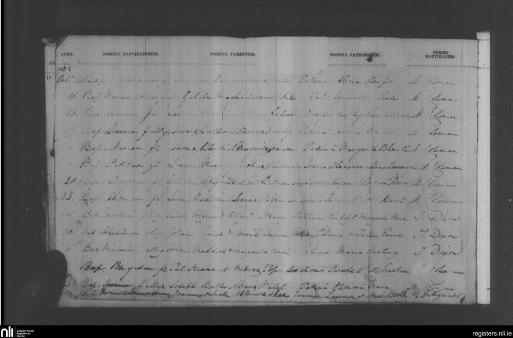 Holy Trinity, Waterford city; County of Waterford; Diocese of Waterford and Lismore. Baptisms, Oct. 1838 to Nov. 1838