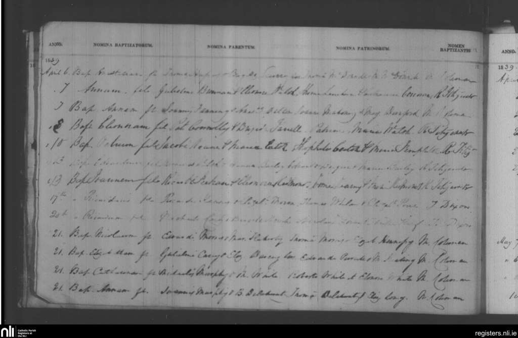 Holy Trinity, Waterford city; County of Waterford; Diocese of Waterford and Lismore. Baptisms, Apr. 1839