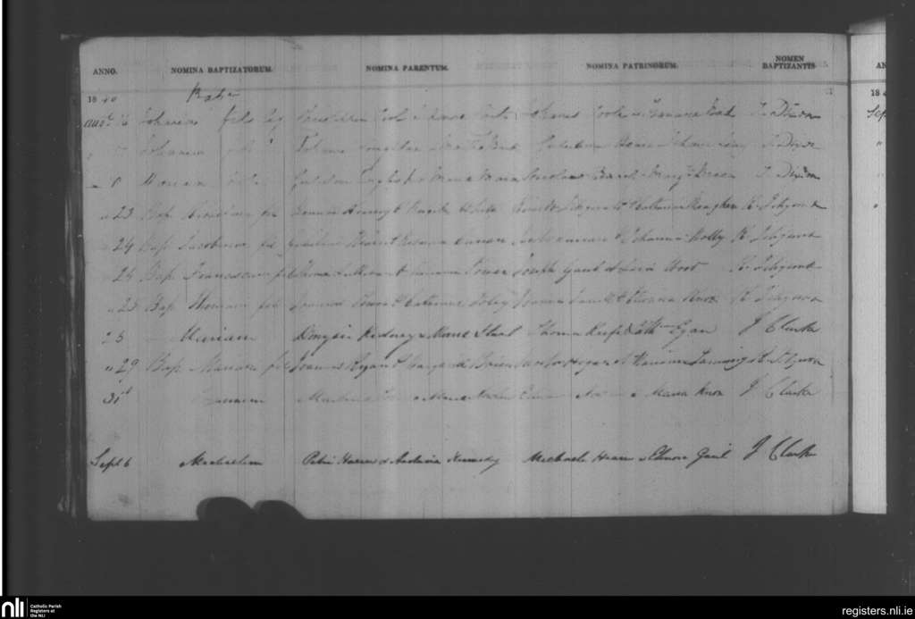 Holy Trinity, Waterford city; County of Waterford; Diocese of Waterford and Lismore. Baptisms, Aug. 1840 to Sep. 1840