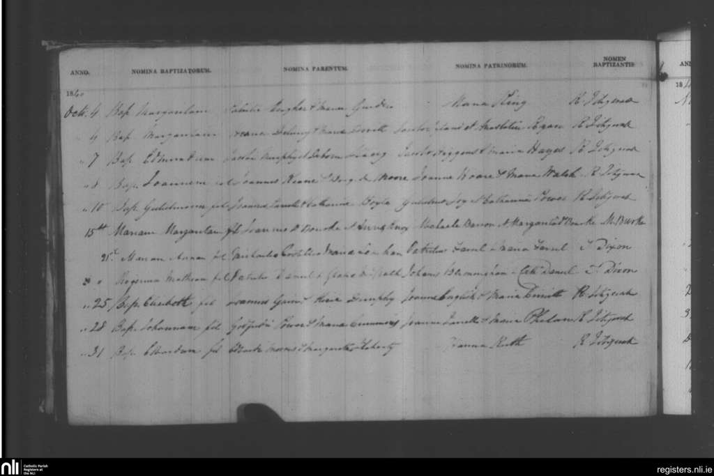 Holy Trinity, Waterford city; County of Waterford; Diocese of Waterford and Lismore. Baptisms, Oct. 1840