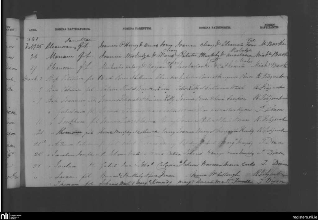 Holy Trinity, Waterford city; County of Waterford; Diocese of Waterford and Lismore. Baptisms, Feb. 1841 to Mar. 1841