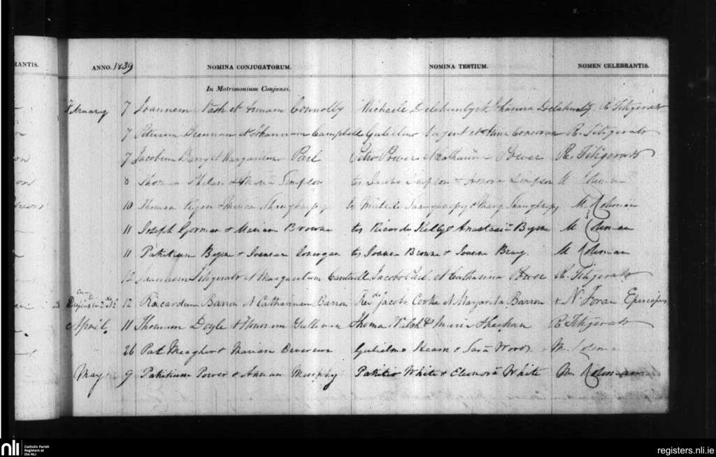 Holy Trinity, Waterford city; County of Waterford; Diocese of Waterford and Lismore. Marriages, Feb. 1839 to May 1839