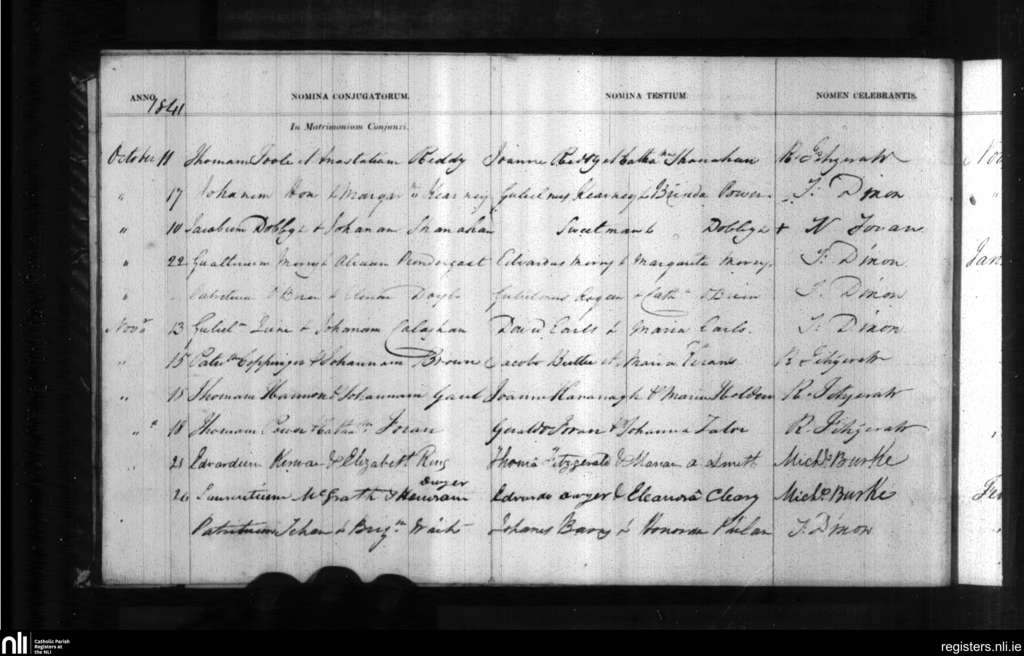 Holy Trinity, Waterford city; County of Waterford; Diocese of Waterford and Lismore. Marriages, Oct. 1841 to Nov. 1841