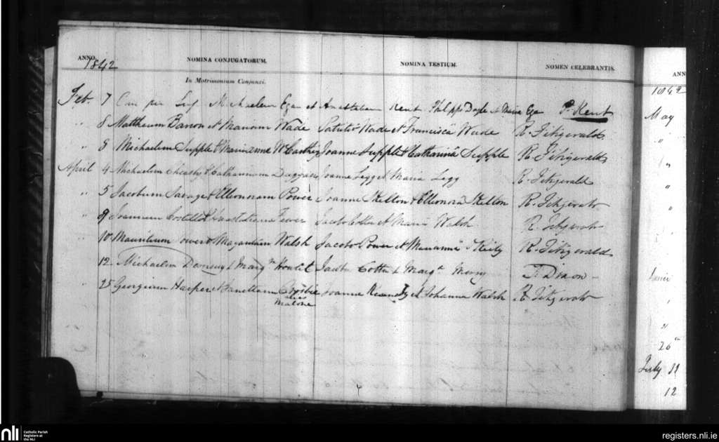 Holy Trinity, Waterford city; County of Waterford; Diocese of Waterford and Lismore. Marriages, Feb. 1842 to Apr. 1842