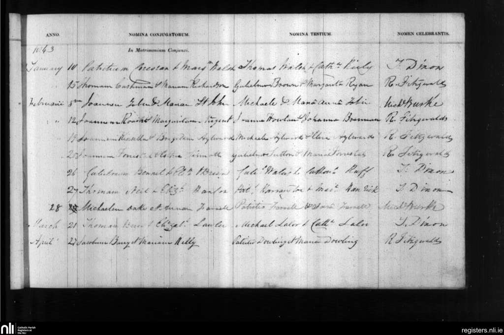 Holy Trinity, Waterford city; County of Waterford; Diocese of Waterford and Lismore. Marriages, Jan. 1843 to Apr. 1843