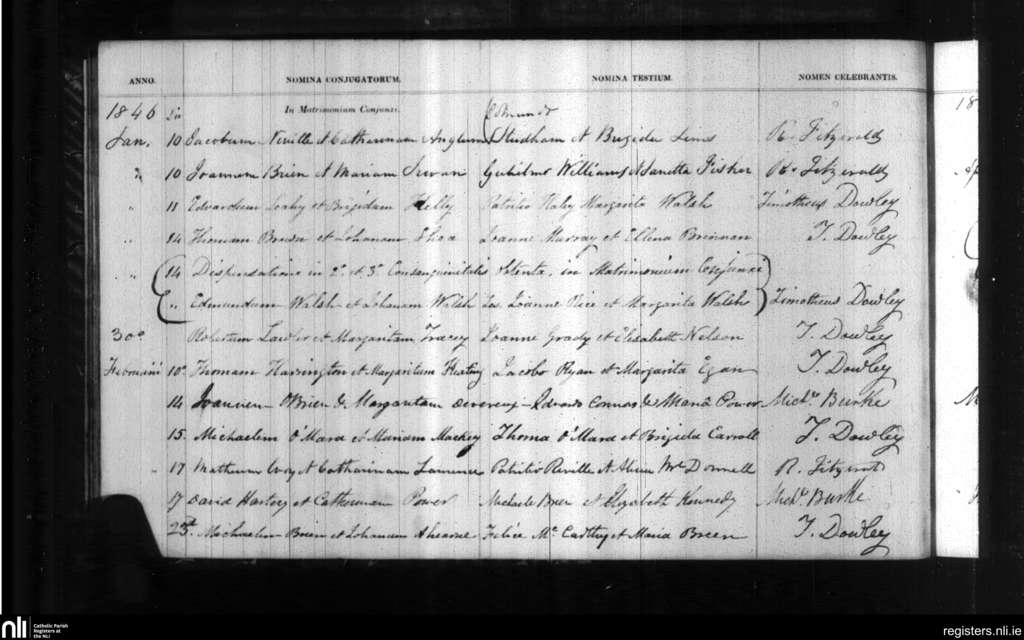 Holy Trinity, Waterford city; County of Waterford; Diocese of Waterford and Lismore. Marriages, Jan. 1846 to Feb. 1846