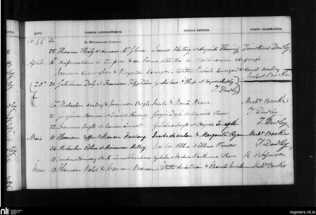 Holy Trinity, Waterford city; County of Waterford; Diocese of Waterford and Lismore. Marriages, Feb. 1846 to June 1846