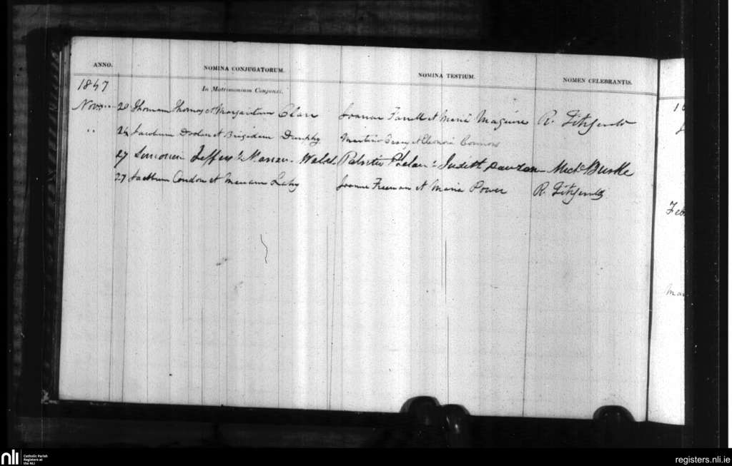 Holy Trinity, Waterford city; County of Waterford; Diocese of Waterford and Lismore. Marriages, Nov. 1847