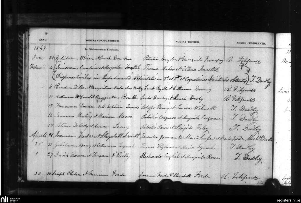 Holy Trinity, Waterford city; County of Waterford; Diocese of Waterford and Lismore. Marriages, Jan. 1849 to Apr. 1849