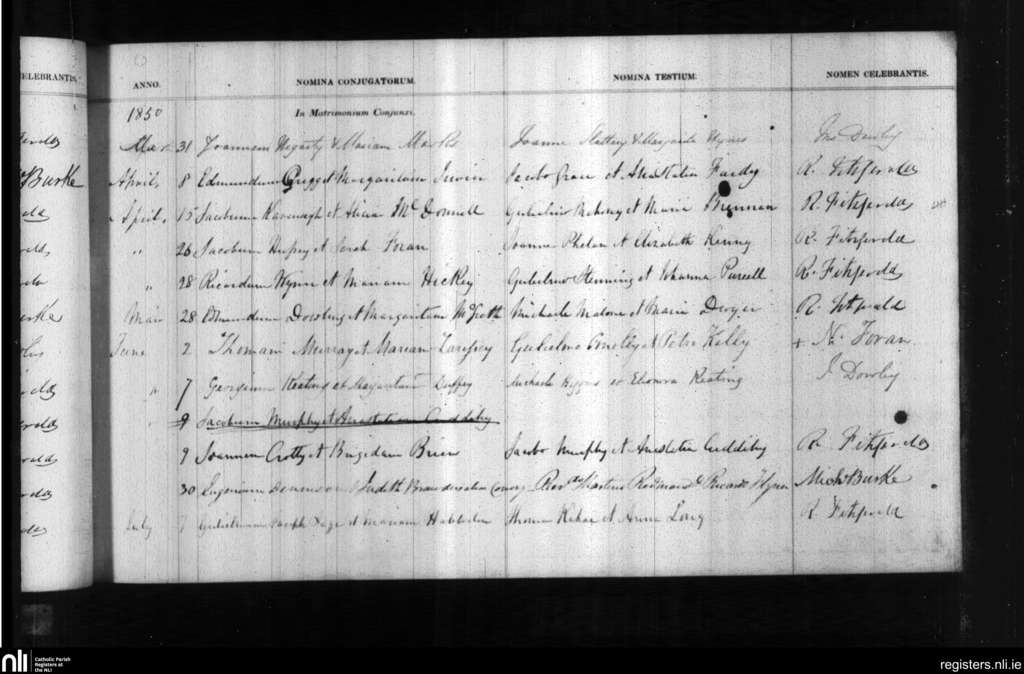Holy Trinity, Waterford city; County of Waterford; Diocese of Waterford and Lismore. Marriages, Mar. 1850 to July 1850