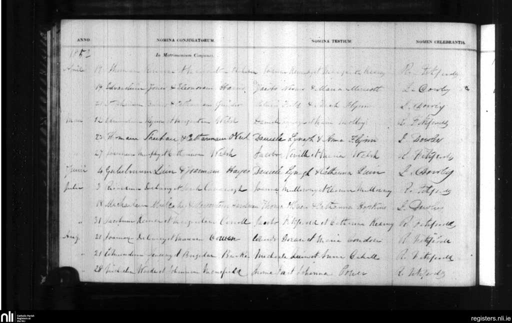 Holy Trinity, Waterford city; County of Waterford; Diocese of Waterford and Lismore. Marriages, Apr. 1852 to Aug. 1852