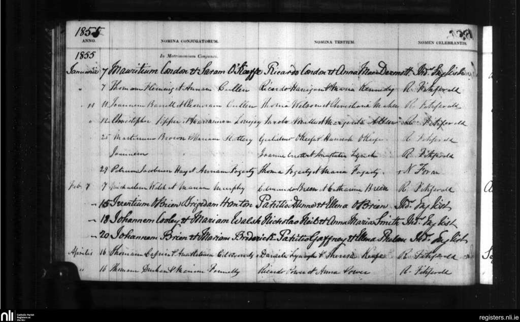 Holy Trinity, Waterford city; County of Waterford; Diocese of Waterford and Lismore. Marriages, Jan. 1855 to Apr. 1855