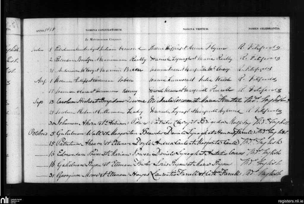 Holy Trinity, Waterford city; County of Waterford; Diocese of Waterford and Lismore. Marriages, July 1858 to Oct. 1858