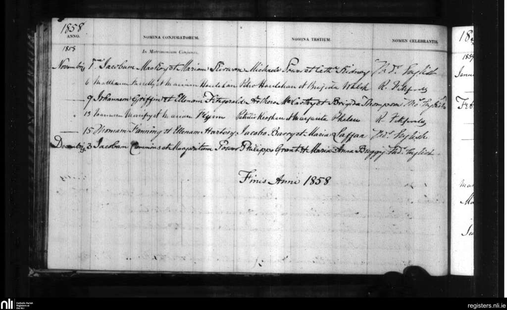 Holy Trinity, Waterford city; County of Waterford; Diocese of Waterford and Lismore. Marriages, Nov. 1858 to Dec. 1858