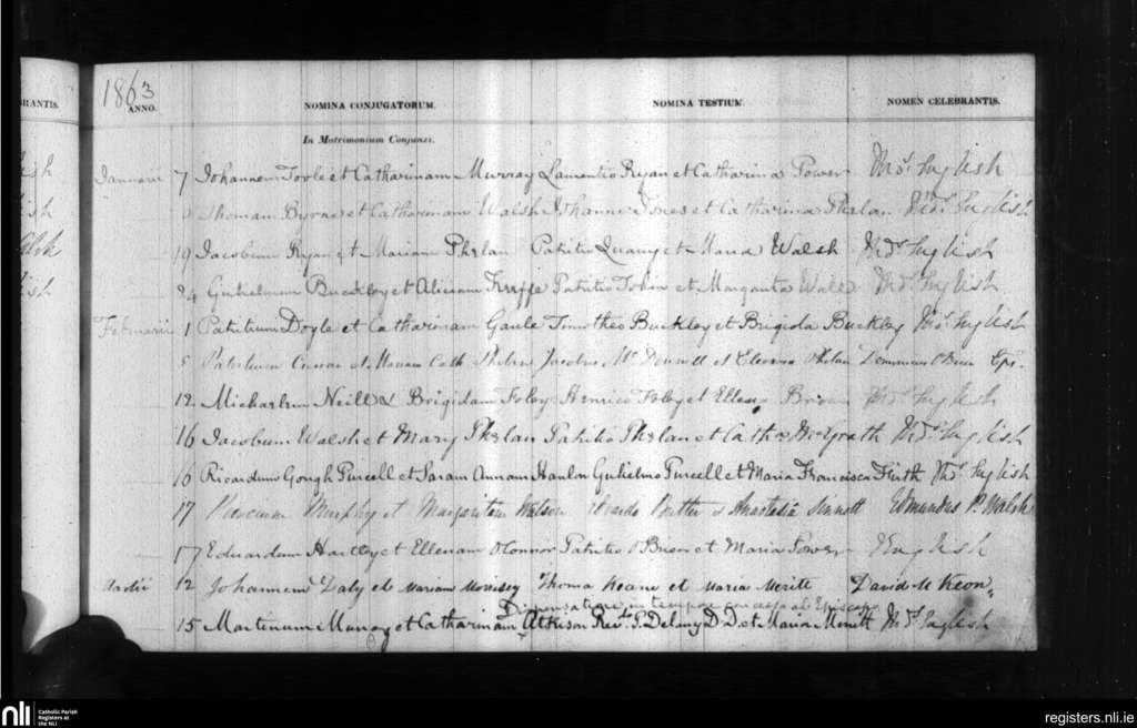 Holy Trinity, Waterford city; County of Waterford; Diocese of Waterford and Lismore. Marriages, Jan. 1863 to Mar. 1863