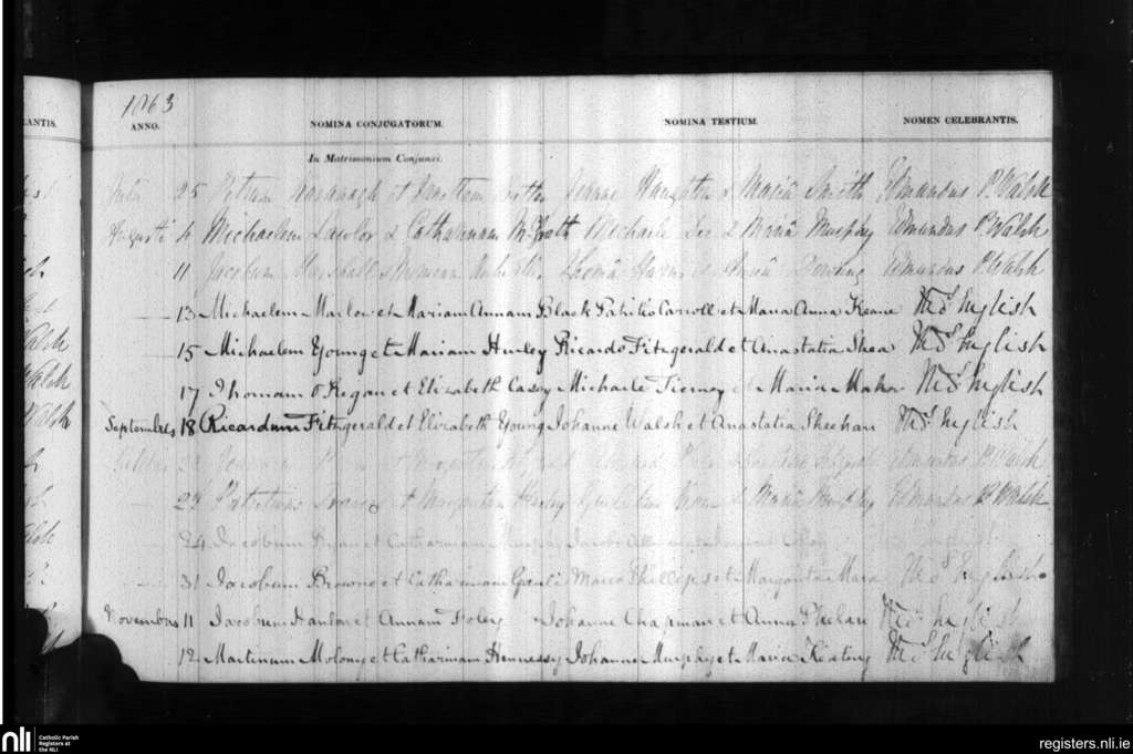 Holy Trinity, Waterford city; County of Waterford; Diocese of Waterford and Lismore. Marriages, July 1863 to Nov. 1863