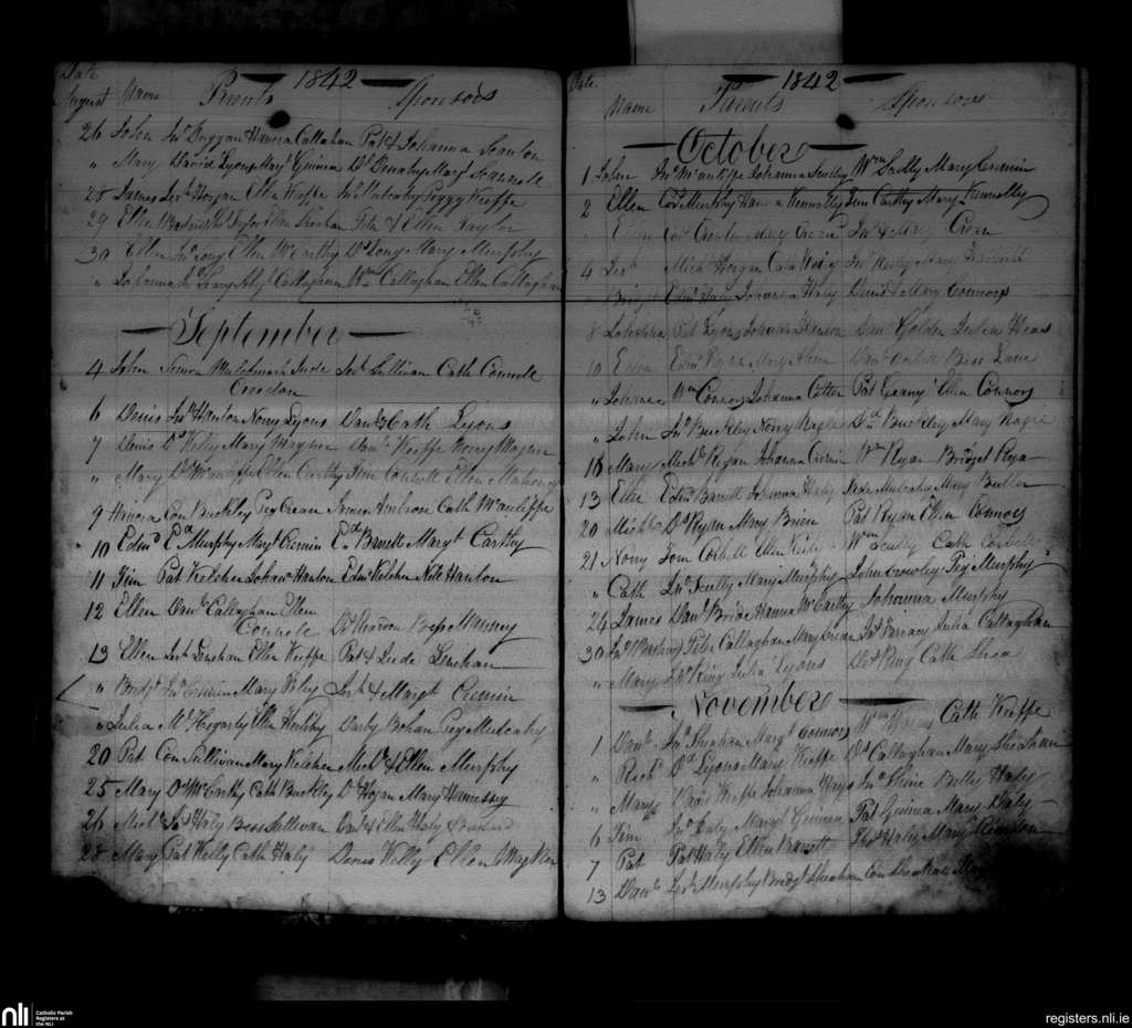 Kilshannig; County of Cork; Diocese of Cloyne. Baptisms, Aug. 1842 to Nov. 1842