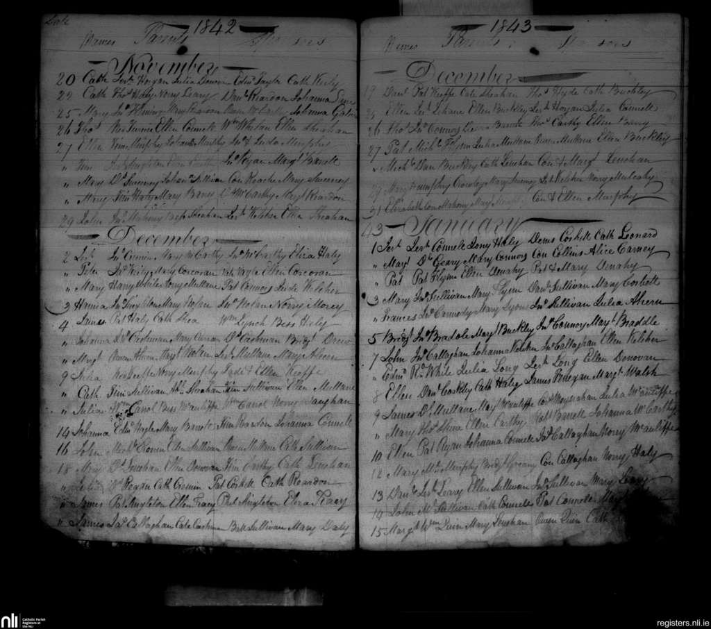 Kilshannig; County of Cork; Diocese of Cloyne. Baptisms, Nov. 1842 to Jan. 1843