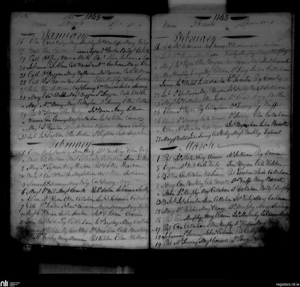 Kilshannig; County of Cork; Diocese of Cloyne. Baptisms, Jan. 1843 to Mar. 1843