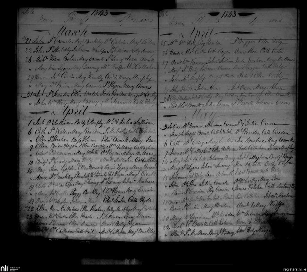 Kilshannig; County of Cork; Diocese of Cloyne. Baptisms, Mar. 1843 to May 1843