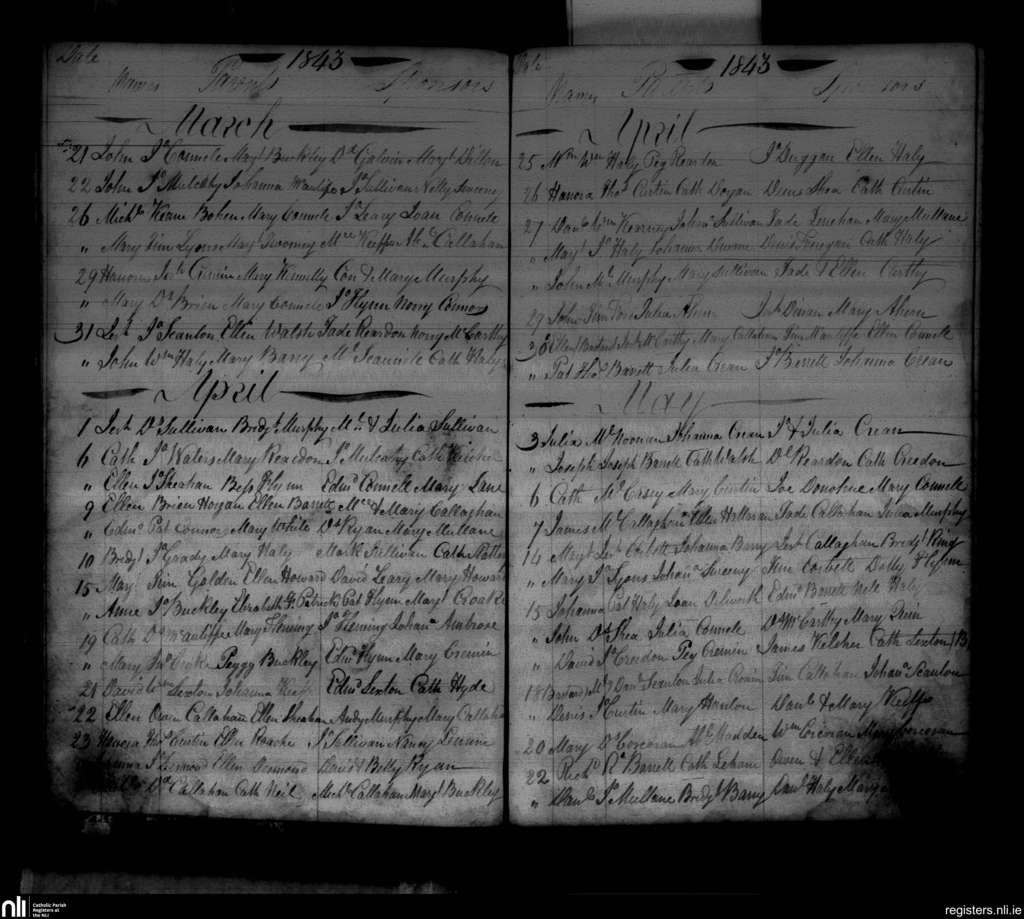 Kilshannig; County of Cork; Diocese of Cloyne. Baptisms, Mar. 1843 to May 1843