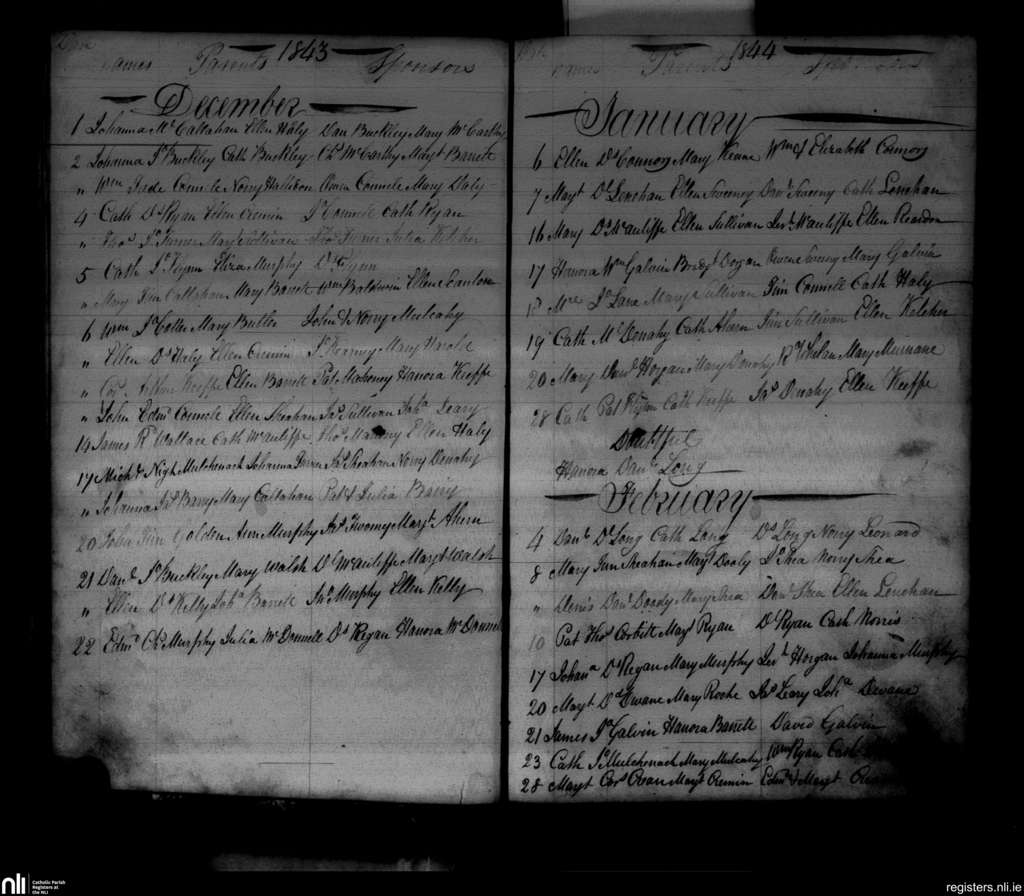 Kilshannig; County of Cork; Diocese of Cloyne. Baptisms, Dec. 1843 to Feb. 1844