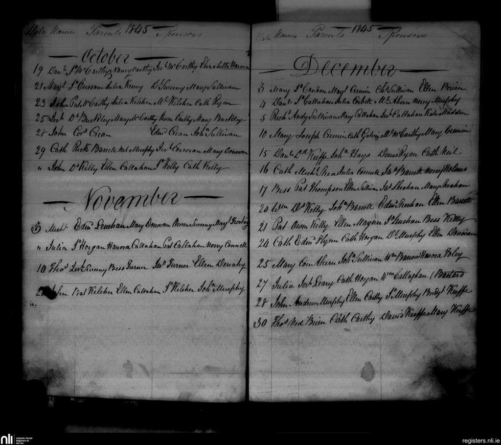 Kilshannig; County of Cork; Diocese of Cloyne. Baptisms, Oct. 1845 to Dec. 1845