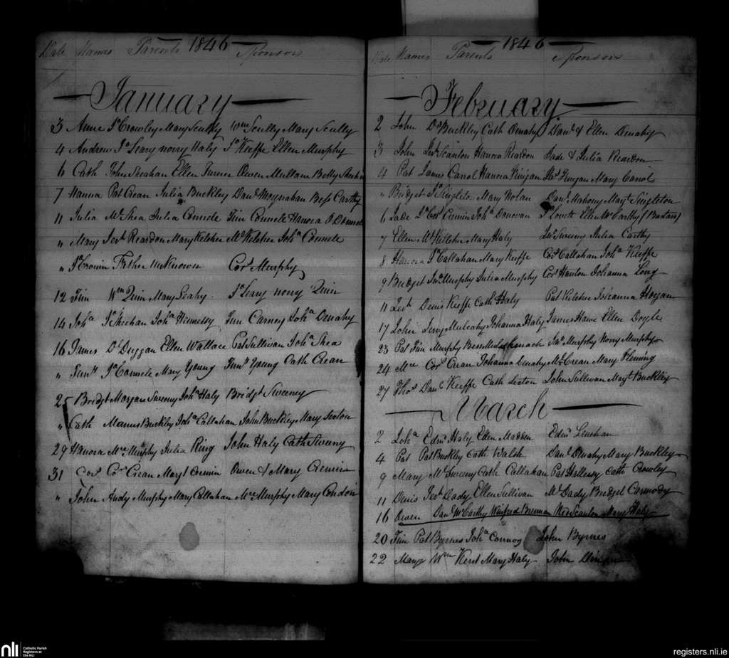 Kilshannig; County of Cork; Diocese of Cloyne. Baptisms, Jan. 1846 to Mar. 1846