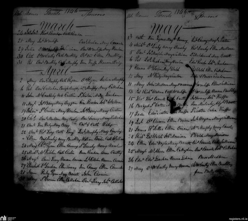 Kilshannig; County of Cork; Diocese of Cloyne. Baptisms, Mar. 1846 to May 1846