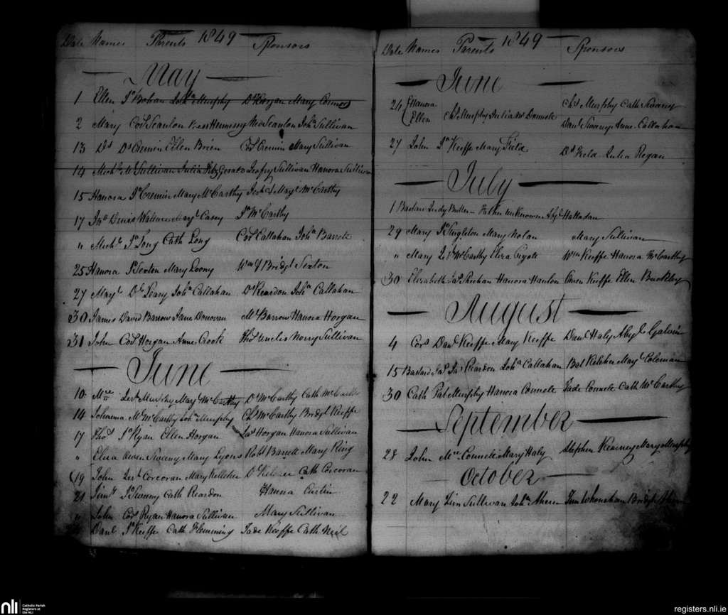 Kilshannig; County of Cork; Diocese of Cloyne. Baptisms, May 1849 to Oct. 1849