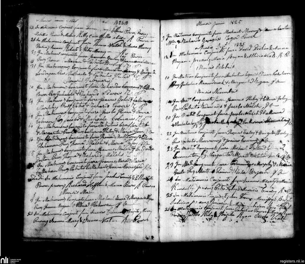 Rossmore; County of Waterford; Diocese of Waterford and Lismore. Marriages, Jan. 1825 to Nov. 1825