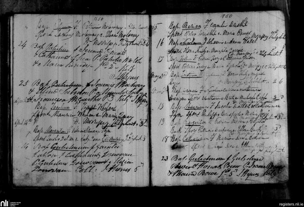 Kilgobinet; County of Waterford; Diocese of Waterford and Lismore. Baptisms, Mar. 1850 to May 1850