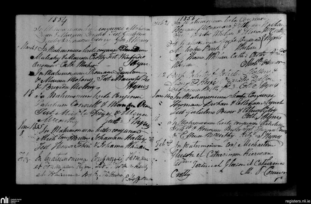 Kilgobinet; County of Waterford; Diocese of Waterford and Lismore. Marriages, Mar. 1854 to Feb. 1856