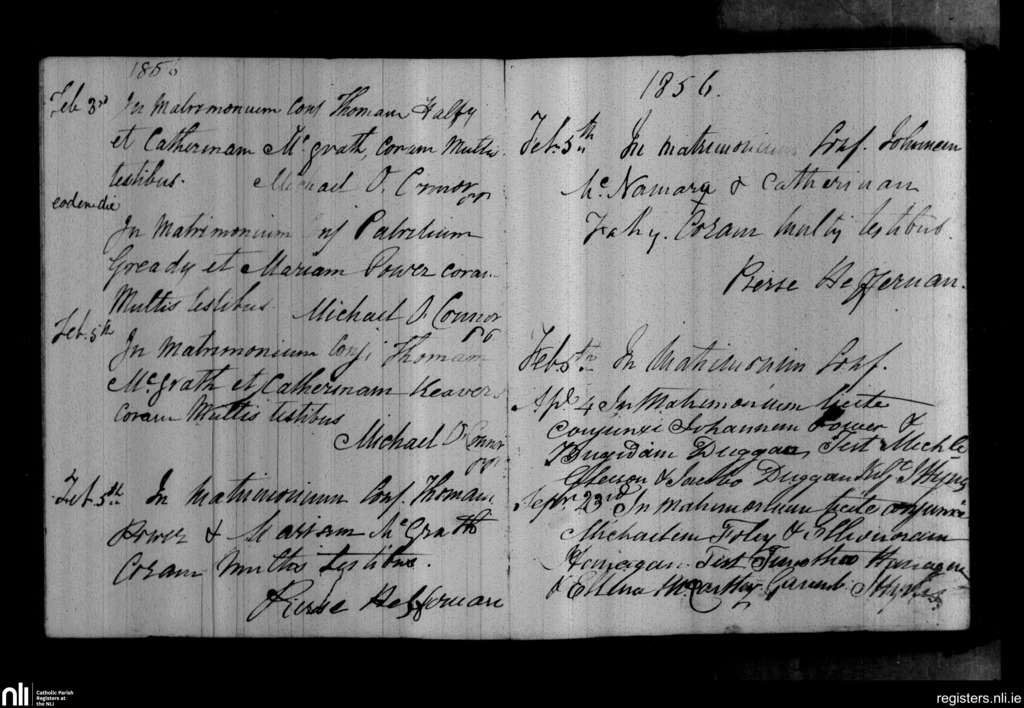 Kilgobinet; County of Waterford; Diocese of Waterford and Lismore. Marriages, Feb. 1856 to Sep. 1856