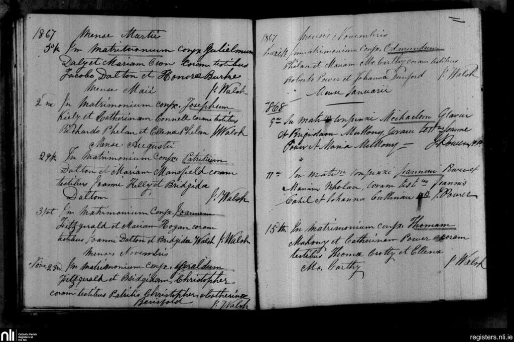 Kilgobinet; County of Waterford; Diocese of Waterford and Lismore. Marriages, Mar. 1867 to Jan. 1868