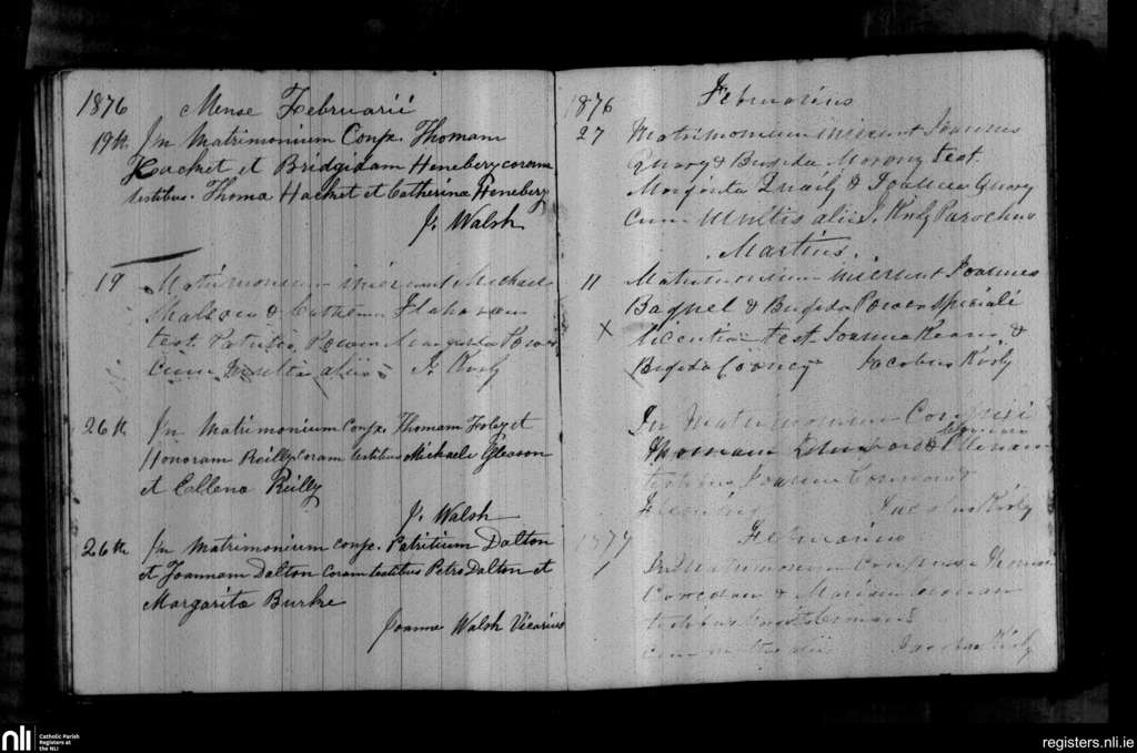 Kilgobinet; County of Waterford; Diocese of Waterford and Lismore. Marriages, Feb. 1876 to Feb. 1877