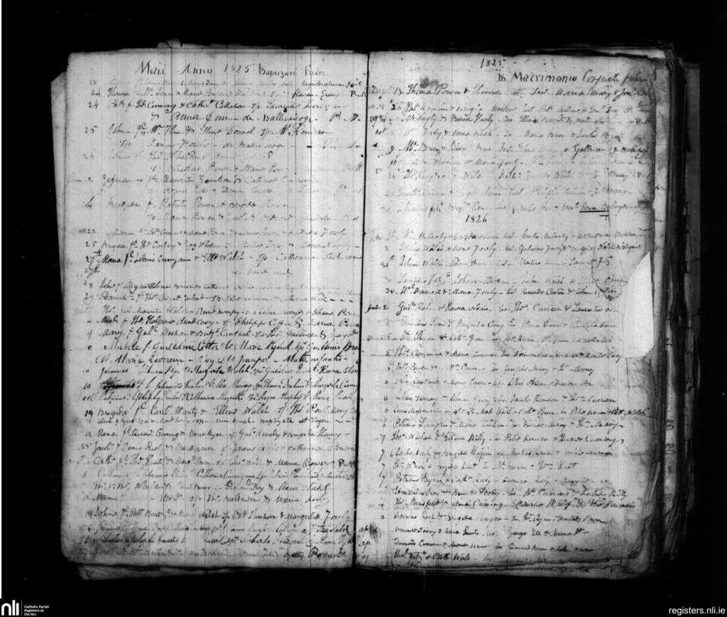 Kilrossanty; County of Waterford; Diocese of Waterford and Lismore. Baptisms, Marriages, May 1825 to Apr. 1826