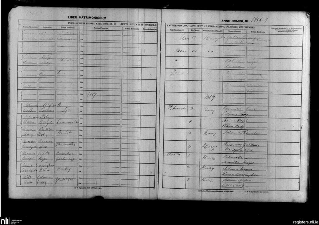 Kilrossanty; County of Waterford; Diocese of Waterford and Lismore. Marriages, May 1866 to Mar. 1867