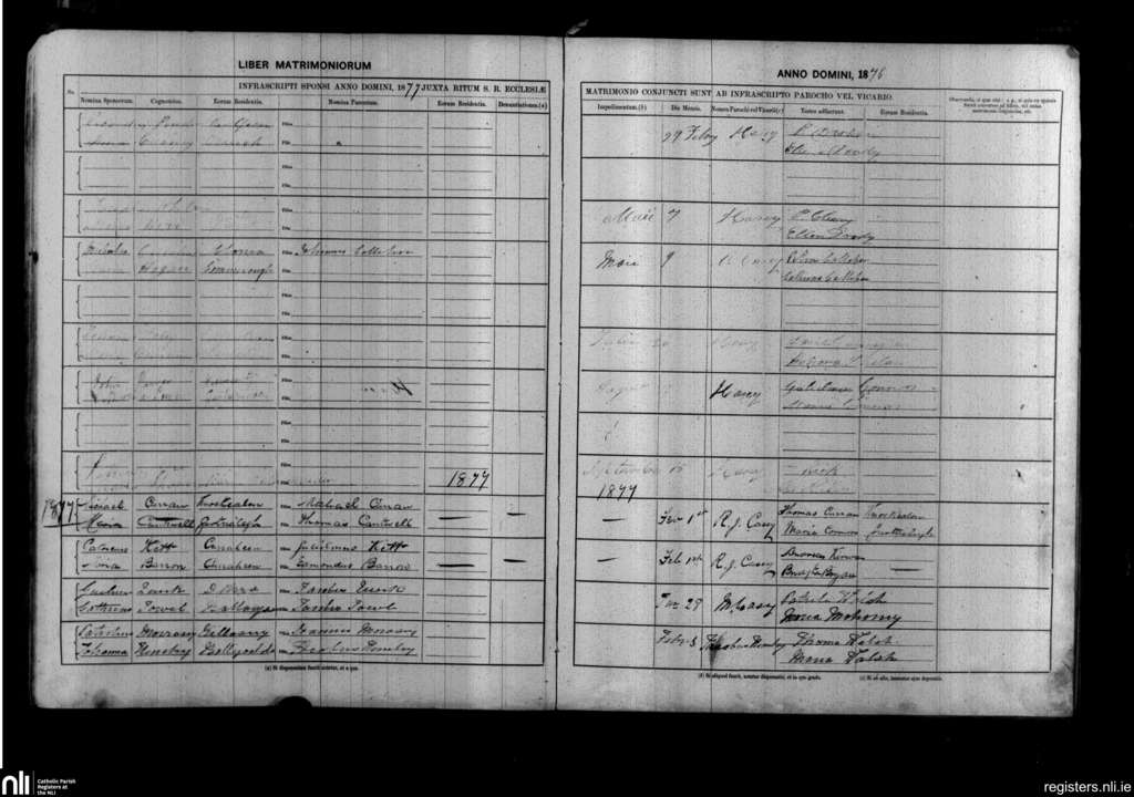 Kilrossanty; County of Waterford; Diocese of Waterford and Lismore. Marriages, Feb. 1876 to Feb. 1877