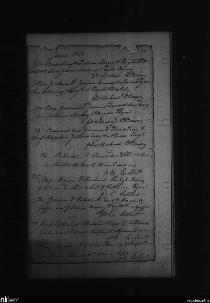 Knockanore; County of Waterford; Diocese of Waterford and Lismore. Baptisms, June 1818