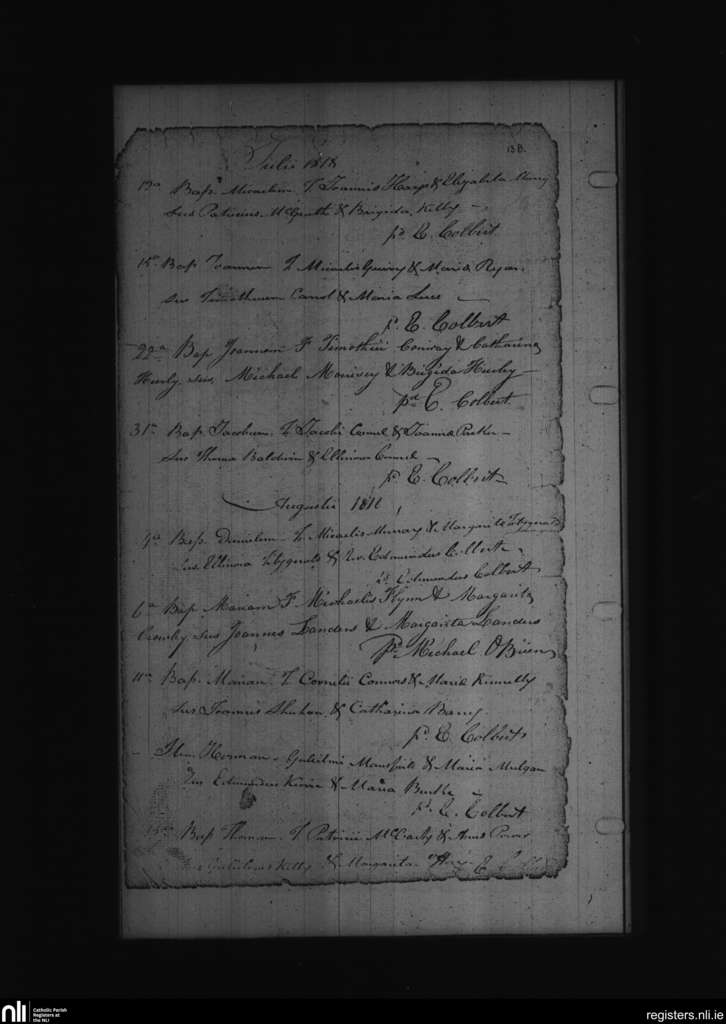 Knockanore; County of Waterford; Diocese of Waterford and Lismore. Baptisms, July 1818 to Aug. 1818