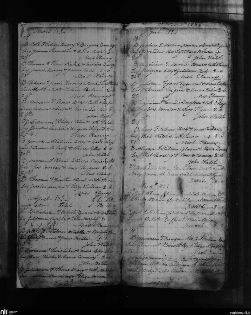 Knockanore; County of Waterford; Diocese of Waterford and Lismore. Baptisms, Mar. 1834 to May 1834