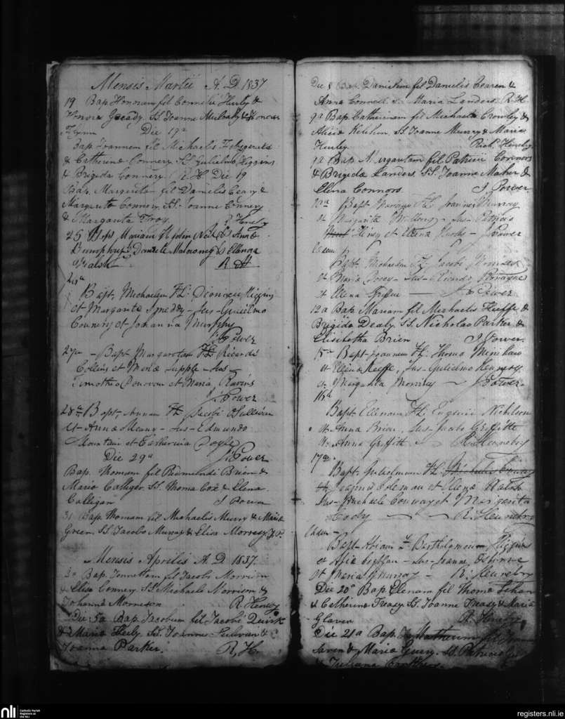 Knockanore; County of Waterford; Diocese of Waterford and Lismore. Baptisms, Mar. 1837 to Apr. 1837