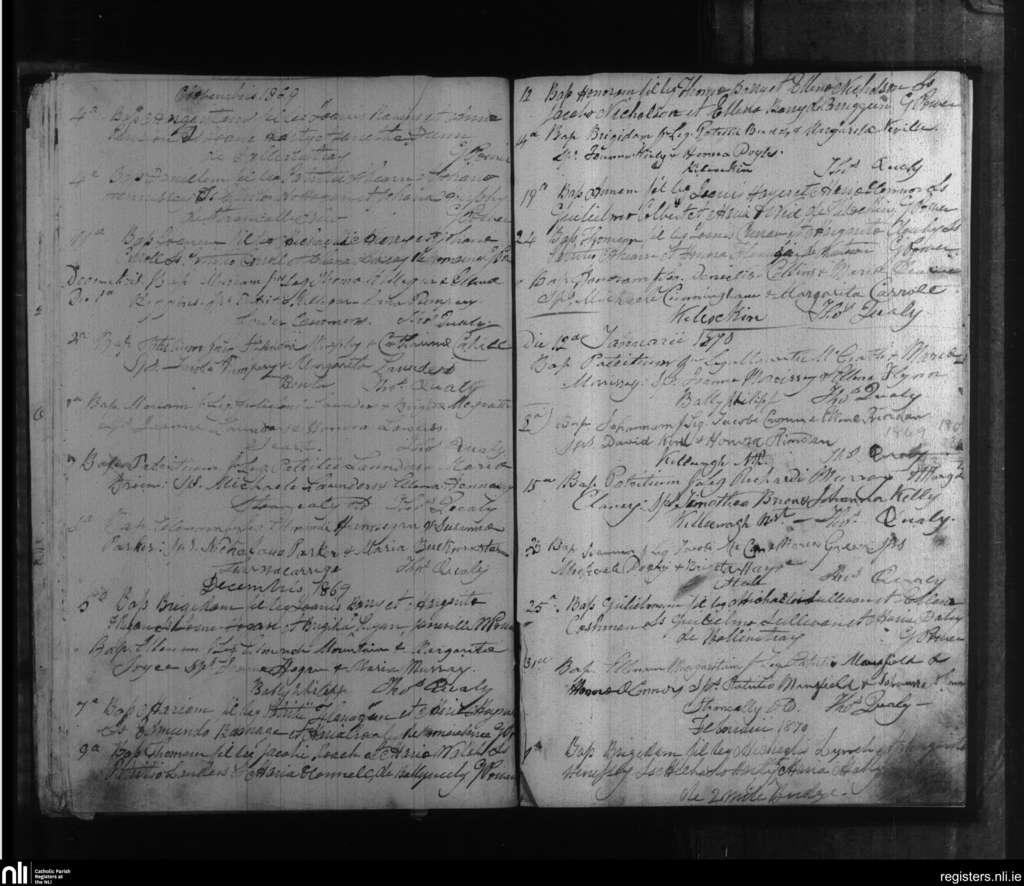 Knockanore; County of Waterford; Diocese of Waterford and Lismore. Baptisms, Nov. 1869 to Feb. 1870