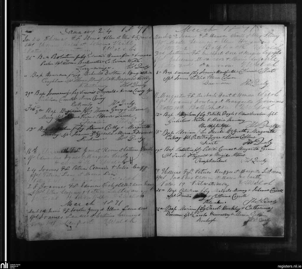 Knockanore; County of Waterford; Diocese of Waterford and Lismore. Baptisms, Jan. 1871 to Mar. 1871