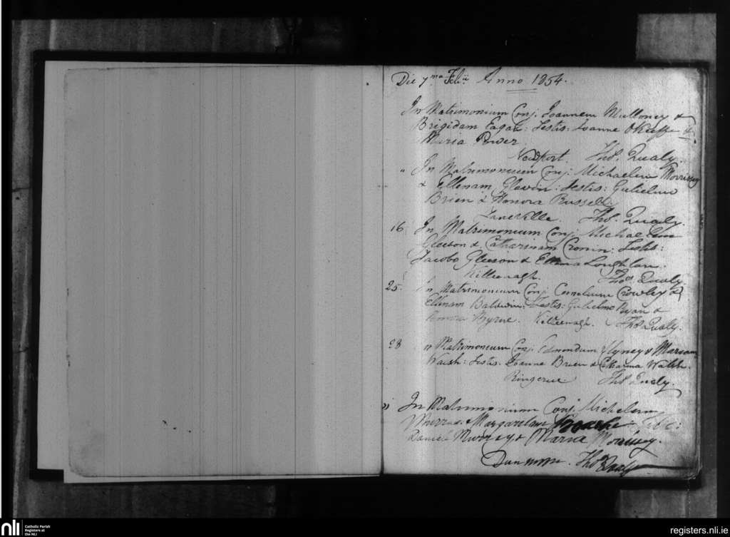 Knockanore; County of Waterford; Diocese of Waterford and Lismore. Marriages, Feb. 1854