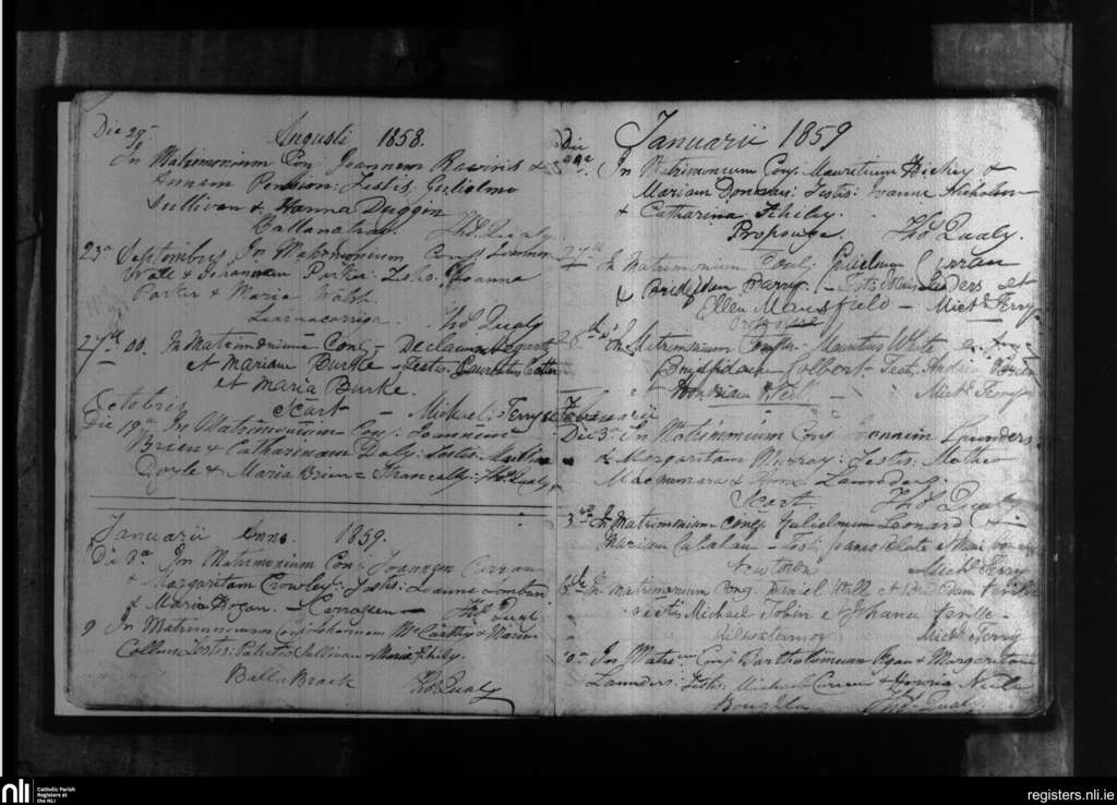 Knockanore; County of Waterford; Diocese of Waterford and Lismore. Marriages, Aug. 1858 to Feb. 1859
