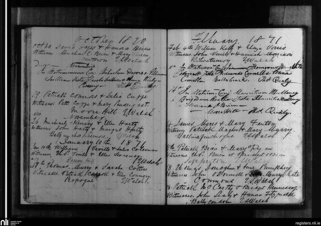 Knockanore; County of Waterford; Diocese of Waterford and Lismore. Marriages, Oct. 1870 to Feb. 1871